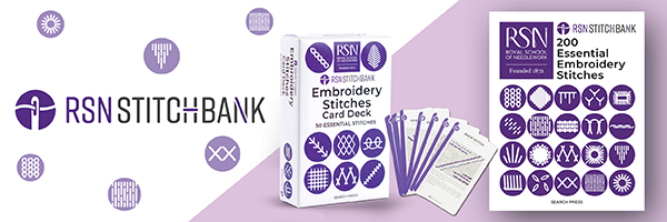 Sales & Marketing Director Charlie de la Bédoyère shares: “Search Press and RSN have had a fantastic partnership of over 15 years, starting from the publication of the first Essential Guides to Crewelwork and Blackwork and continuing to the brilliant RSN Stitch Bank. I’m pleased that we’re able to expand our relationship by offering even more support to loyal RSN patrons.”